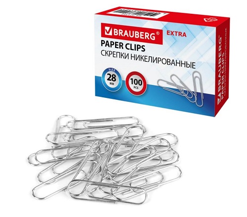 Скрепки Extra Brauberg 28мм никелированные 100 шт