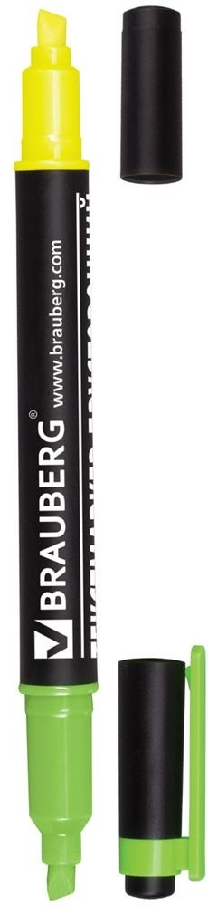 Текстовыделитель двусторонний BRAUBERG, ЖЕЛТЫЙ-ЗЕЛЕНЫЙ, линия 1-4 мм, 150841